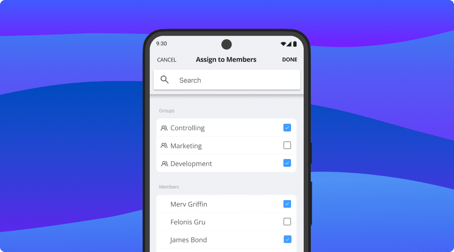 Assign your tiles (clients, projects, and tasks) to specific team members or groups so that only they can see them.