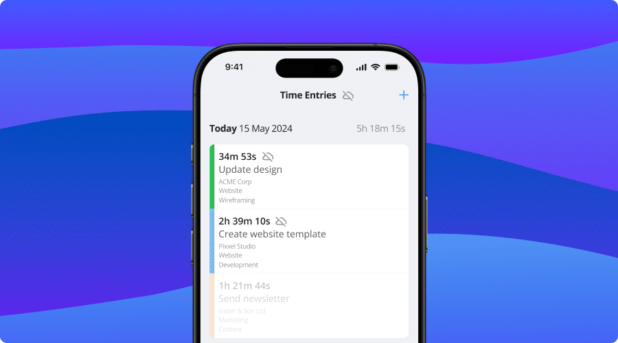 Um eine Zeit zu erfassen, wähle einfach einen Kunden und ein Projekt aus und starte den Timer. Fertig? Drück erneut, um den Timer zu stoppen.