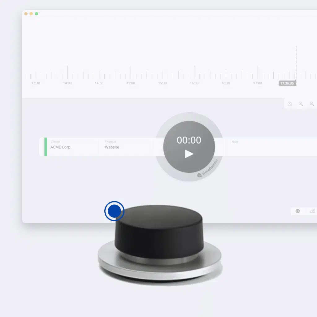 Der Buzzer leuchtet in den Farben deiner Projekte und zeigt dir an, ob die Zeit korrekt erfasst wird, ohne dass du die App öffnen musst.