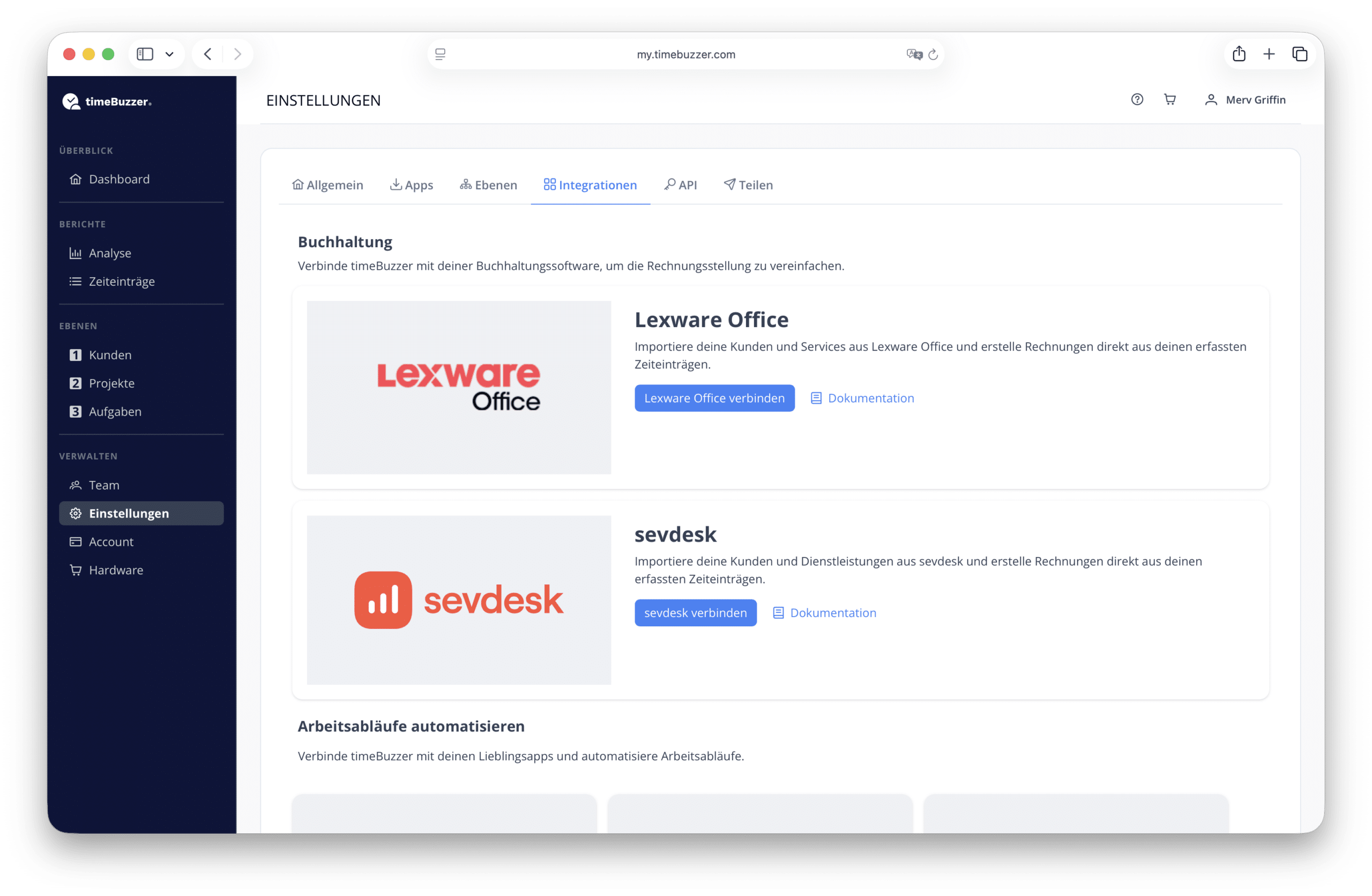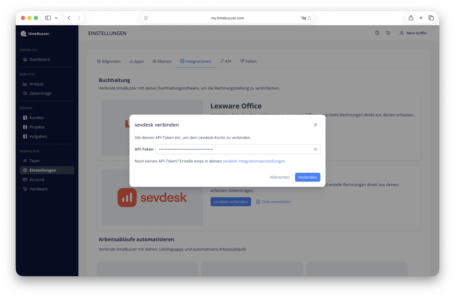 Die erstmalige Verknüpfung von timeBuzzer und sevdesk ist einfach: