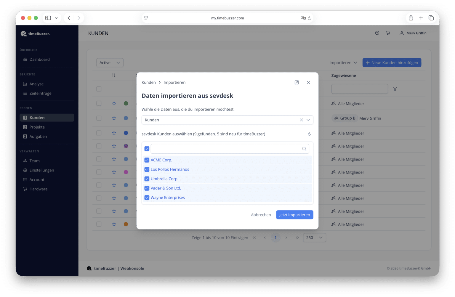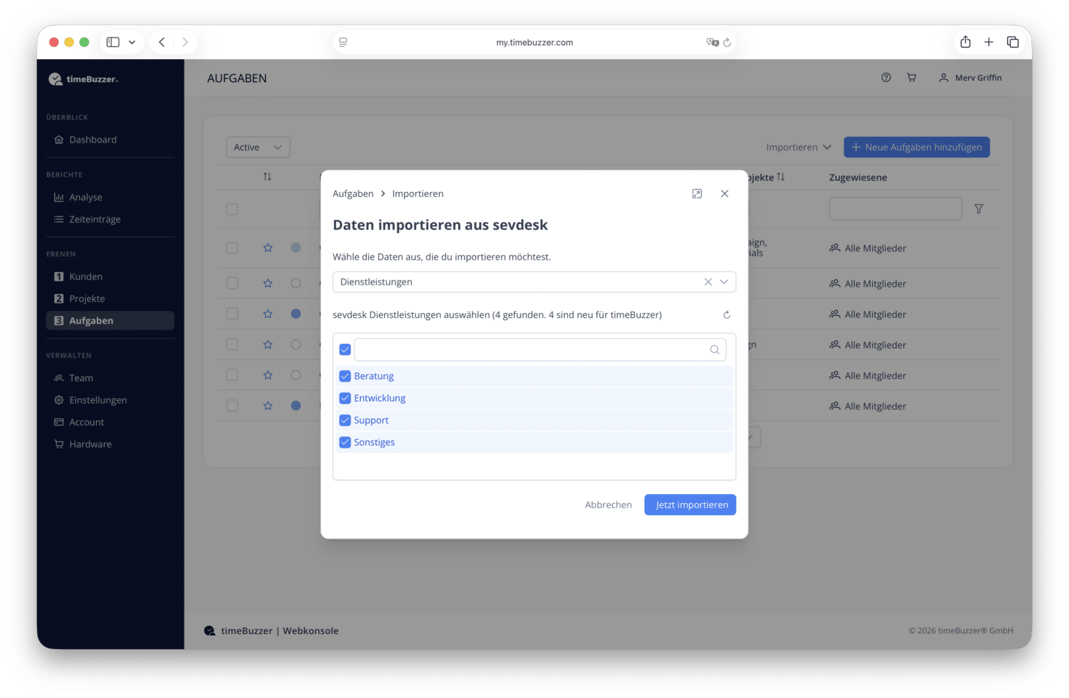 - Kunden und Dienstleistungen aus sevdesk importieren