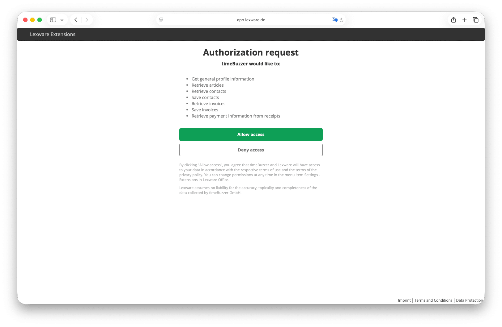 Connect timeBuzzer to Lexware Office #